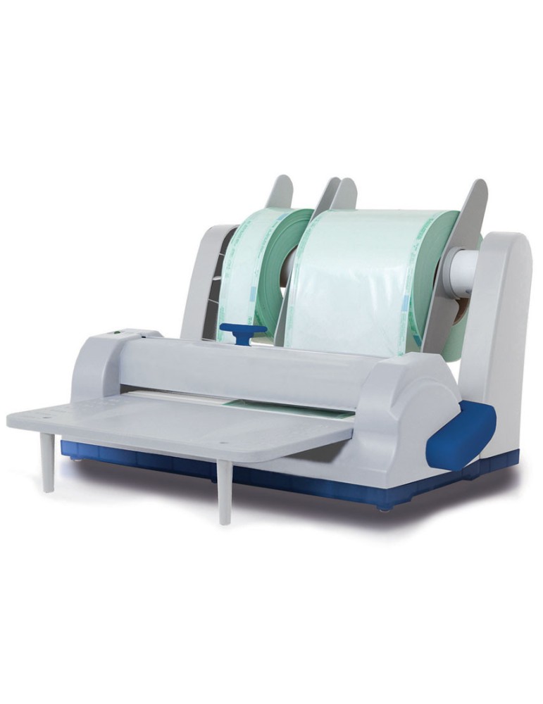Vertikalt design for at reducere pladsbehovet. Integreret med en aftagelig rulleholder, der også kan placeres separat fra svejsemaskinen. Kan kun bruges med medicinske PP-papirlaminater og/eller plastikposer, der er egnede til dampsterilisering.