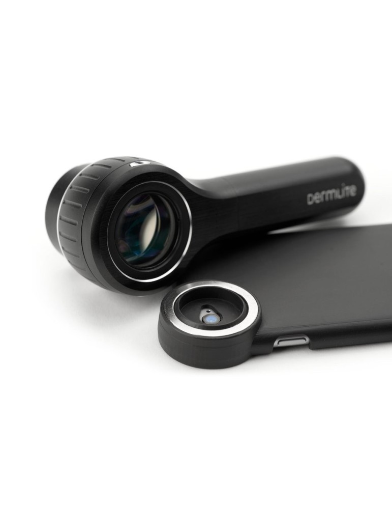 Den udtrækkelige afstandsstykke muliggør kontakt- og ikke-kontaktdermoskopi med uovertruffen hastighed og tilbyder præcis fokusering, selv når den bruges mod huden.