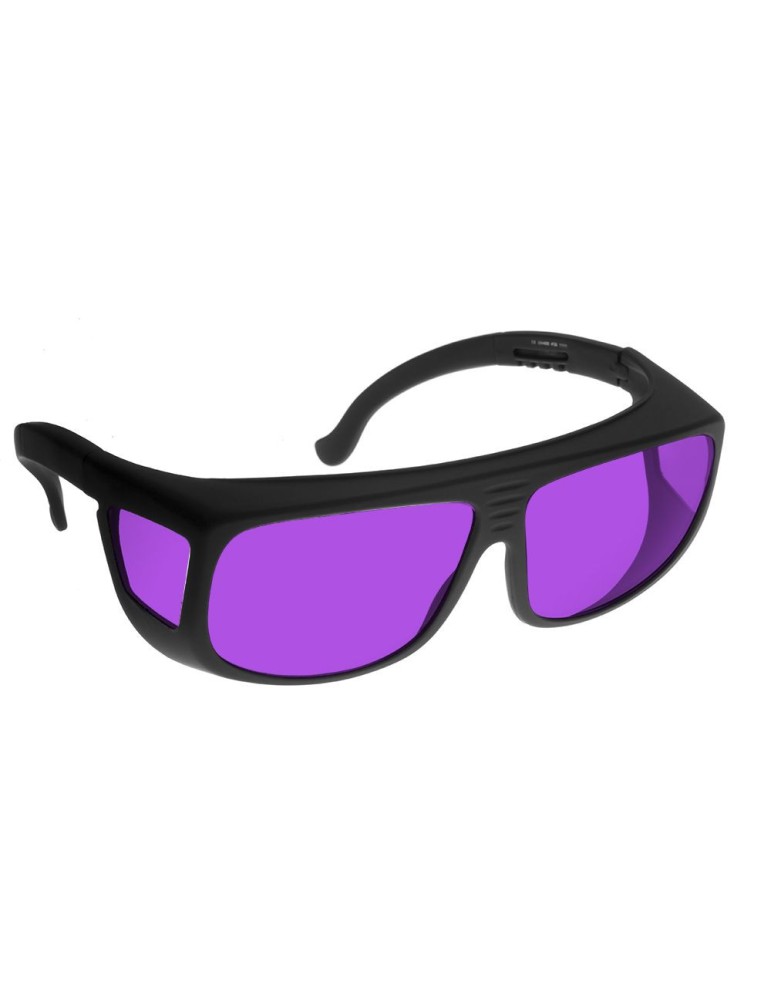 Beskyttelsesbriller til DYE-lasere i gul farve med bølgelængder 575-595 nm.