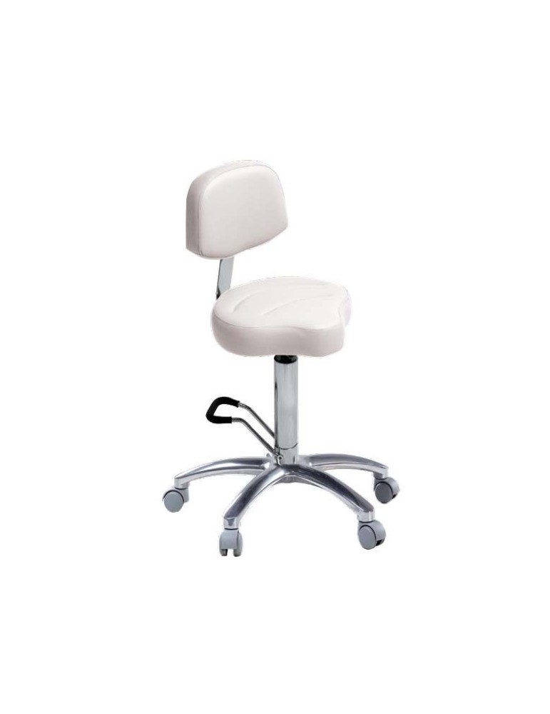Taburet med justerbar ryglæn og hydraulisk justering LEMI 040/S til operatører i dermatologi- og æstetisk medicinklinikker.