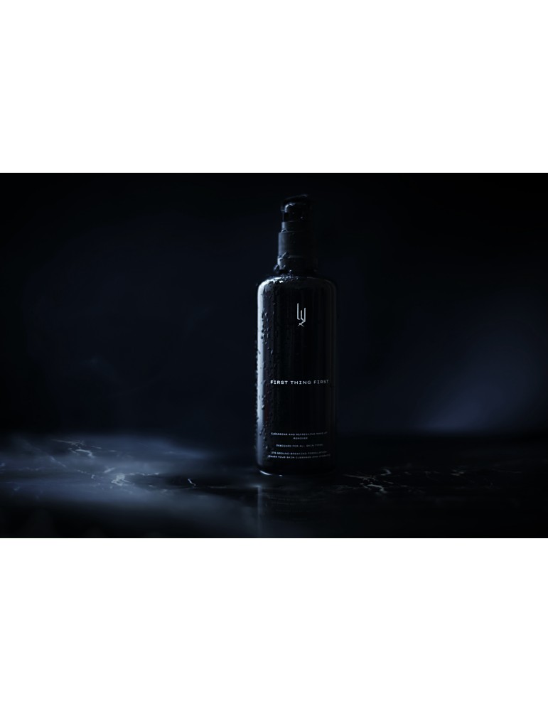 First Thing First er en mild rensecreme, der giver ansigtet effektiv beskyttelse mod miljømæssige stressfaktorer takket være tilstedeværelsen af trehalose, et naturligt polysaccharid, der kan opretholde hudens fugtighed. Sukkerets fugtgivende egenskaber ledsages af macadamia-olies blødgørende og regenererende virkning. Formlen er beriget med planteekstrakter af papaya og lind med fugtgivende og lysnende egenskaber.