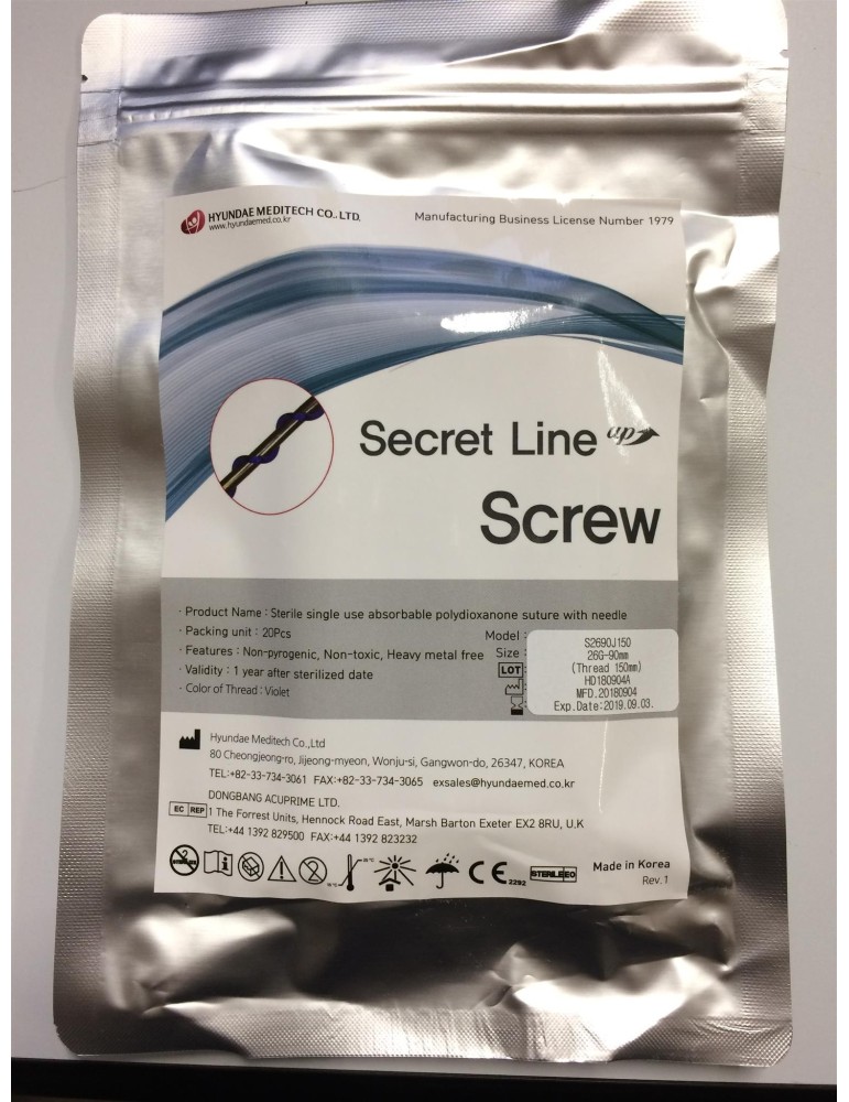 Alle Secret Line suturnåle er fremstillet i Sydkorea og steriliseret med ethylenoxid. De er engangsprodukter og bør opbevares ved stuetemperatur eller i køleskabet.