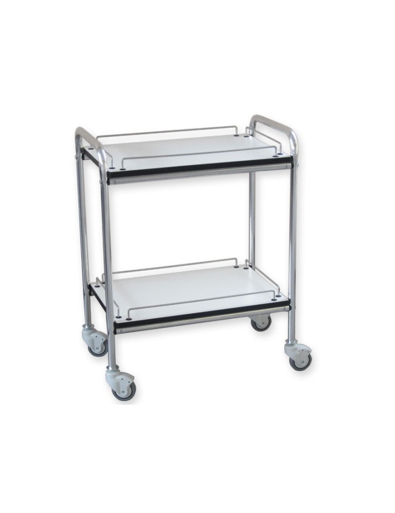 Praktisk vogn med aluminiumsramme og håndtag, 2 hvide 18 mm bilaminathylder, sorte PVC-kanter med sider.