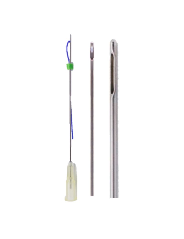 Resorberbare træktråde i polydioxanon (PDO) Secret Cog-kanyle med stump spids, type W. Monofilamenttråde med modhager til trækkraft og støtte af ansigts- og kropsvæv.