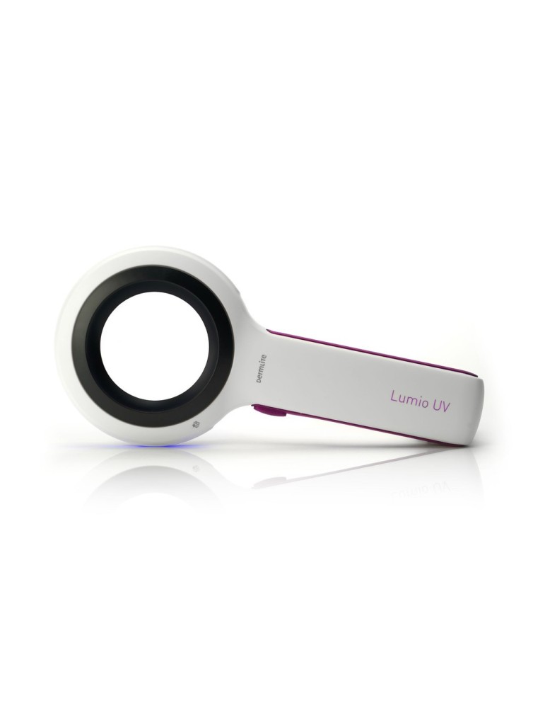 Dermlite Lumio UV er en moderne reinkarnation af en trælampe . Med sit 75 mm objektiv, der tilbyder 2x forstørrelse, og effekten af 40 UV-LED'er (lysdioder) er Lumio UV et uundværligt værktøj til undersøgelser, der kræver ultraviolet lys.