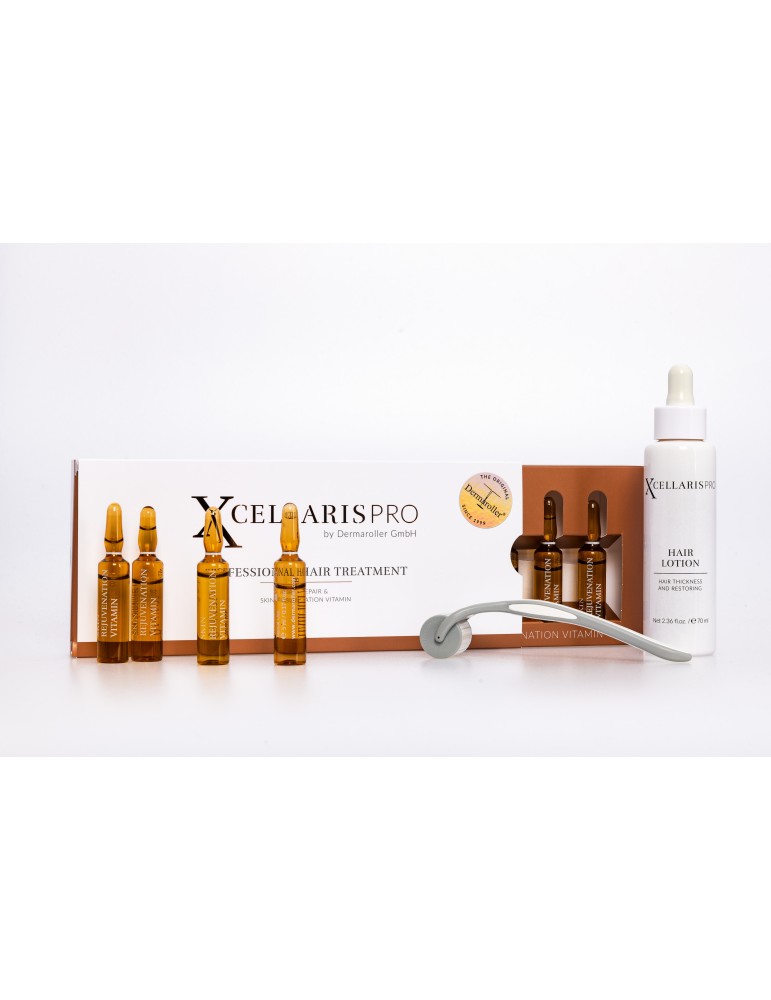XcellarisPro Hair Loss, das Original-Behandlungsset gegen Haarausfall der Dermaroller GmbH . Enthält den Dermaroller HC902, eine Haarlotion und eine professionelle Haarbehandlung.