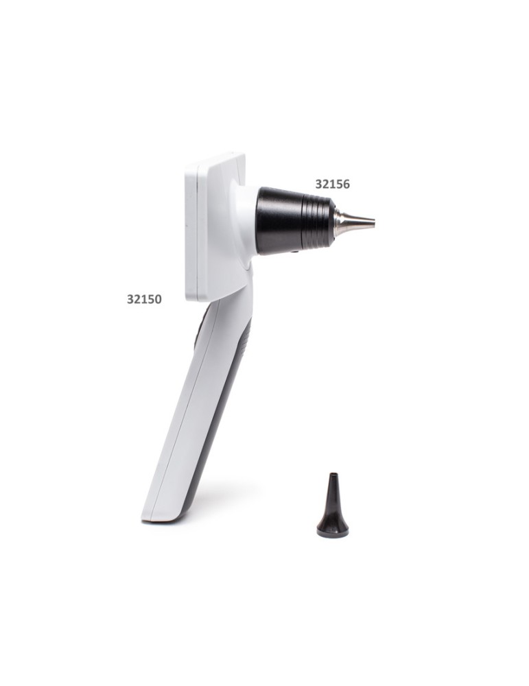 Otoskoopin linssi Riester RCS-100 -kameraan. Otoskoopin linssi, jossa on pneumaattinen otoskopiaportti.