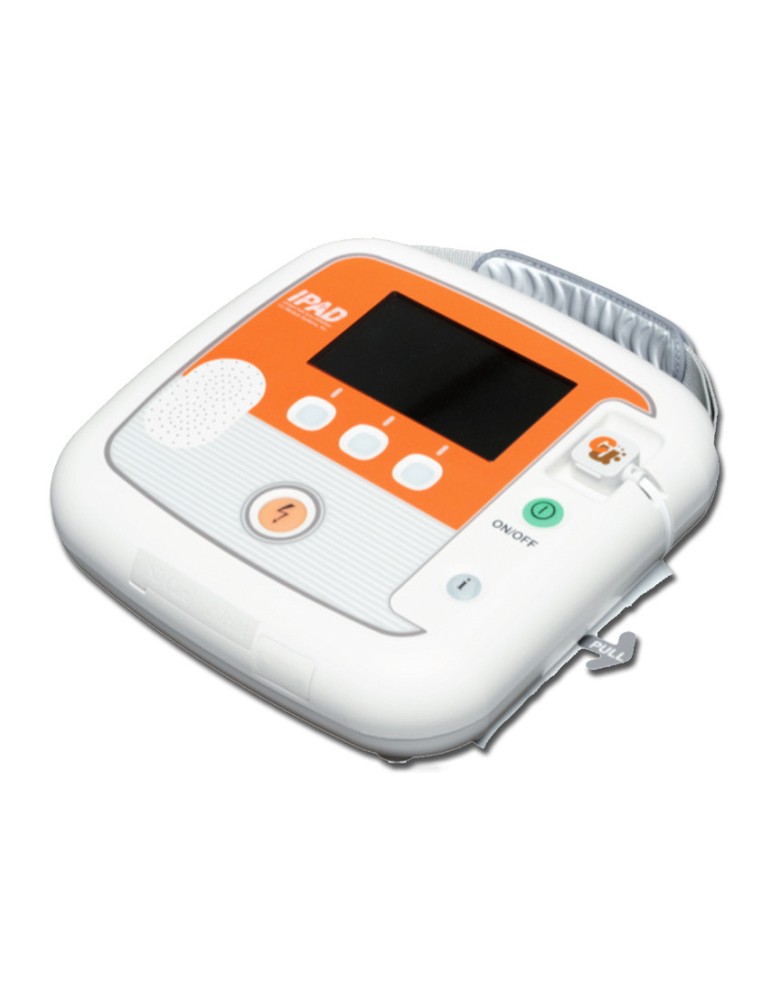CU Medicalin valmistama puoliautomaattinen defibrillaattori monitorilla, malli iPAD CU-SP2, saatavilla 25 kielellä, jotka on mainittava tilauksen yhteydessä .