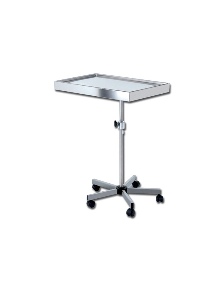 Mayo-pöytä manuaalisella korkeussäädöllä, 5-pyöräinen jalusta. Luokan I lääkinnällinen laite.