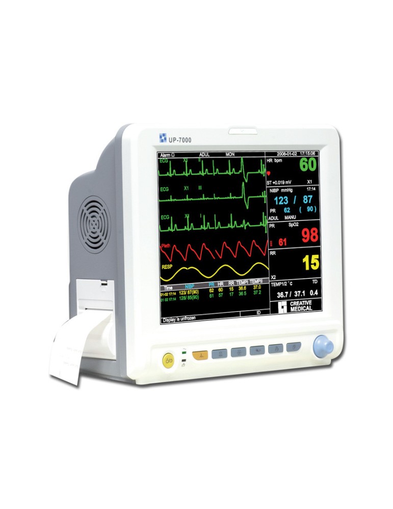 UP 7000 12,1-tuumainen korkearesoluutioinen moniparametrimonitori, jossa on integroitu lämpötulostin.