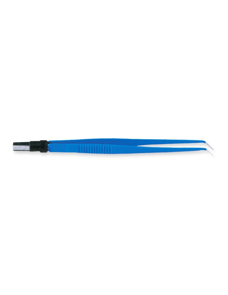 Bipolaariset pihdit sähkökirurgiseen laitteeseen. Kaarevat, pituus 18 cm, kärjet 1 mm.