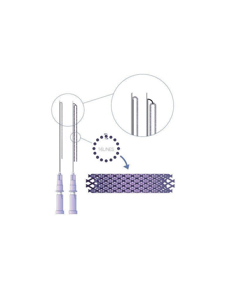 Esteettiset PDO-vetolangat, joissa on Retense 19G 60 mm:n putkimainen sukka ja L-tyyppinen kanyyli.