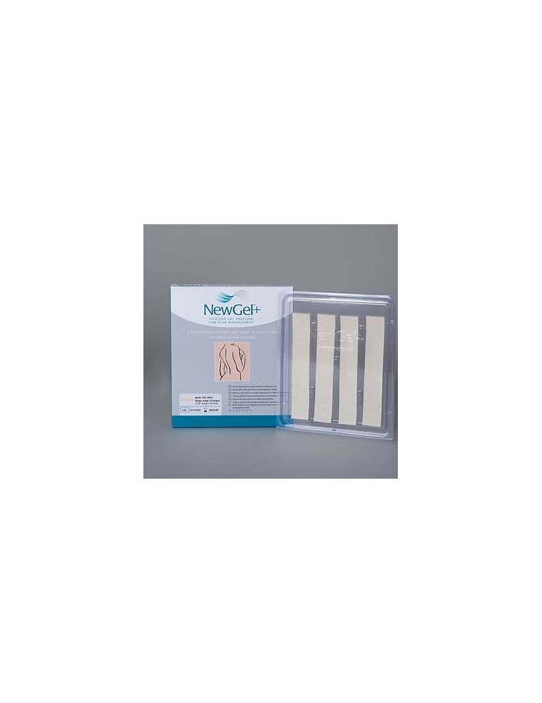 NewGel+ Beige siliconenstrips zijn 2,5 x 15,2 cm (1" x 6") siliconenstrips van medische kwaliteit, speciaal ontworpen voor rechte littekens. De strips kunnen op maat geknipt worden en zijn, mits goed gereinigd, herbruikbaar . De beige kleur zorgt voor een discreet effect onder kleding. Verpakkingen van 10 stuks met elk 4 strips.