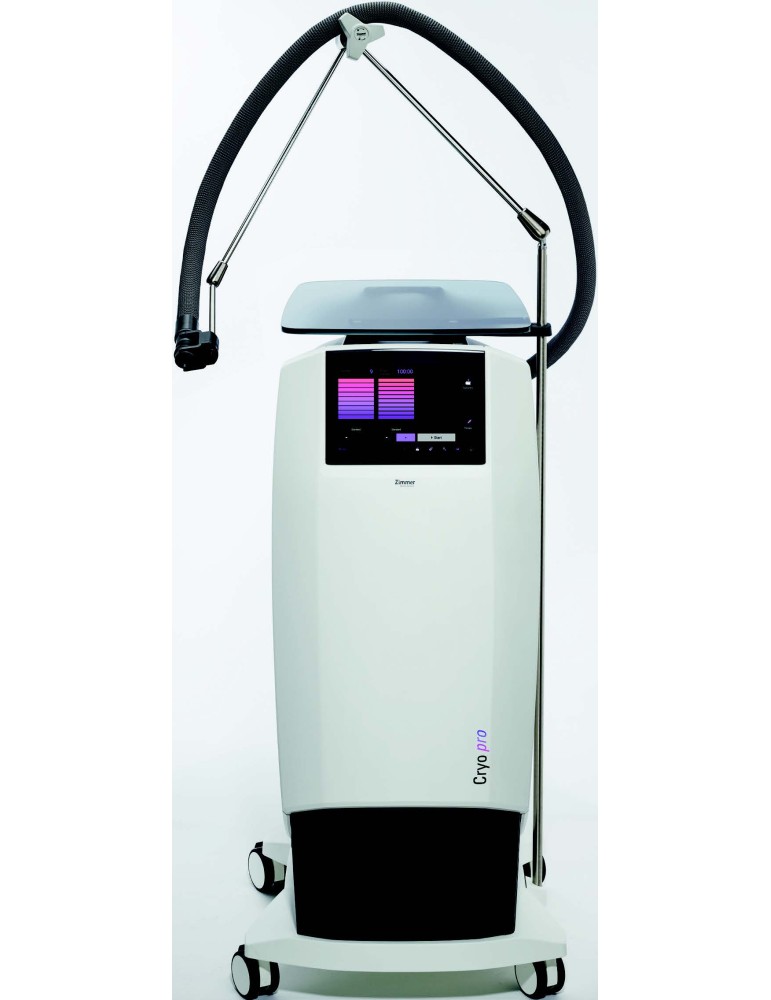 Zimmer CryoPro , de nieuwe luchtkoeler voor laseresthetische behandelingen, dermatologische ingrepen en cryotherapie, met filtering en ultraviolet (UV) desinfectie van de aangevoerde lucht en het PRO-handstuk. CryoPro kan ook worden gebruikt bij cryotherapie voor de behandeling van bepaalde aandoeningen van het bewegingsapparaat.
