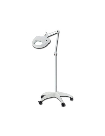 Lampa Wooda z lupą na wózku do diagnostycznych badań skóry, wyposażona w soczewkę powiększającą.