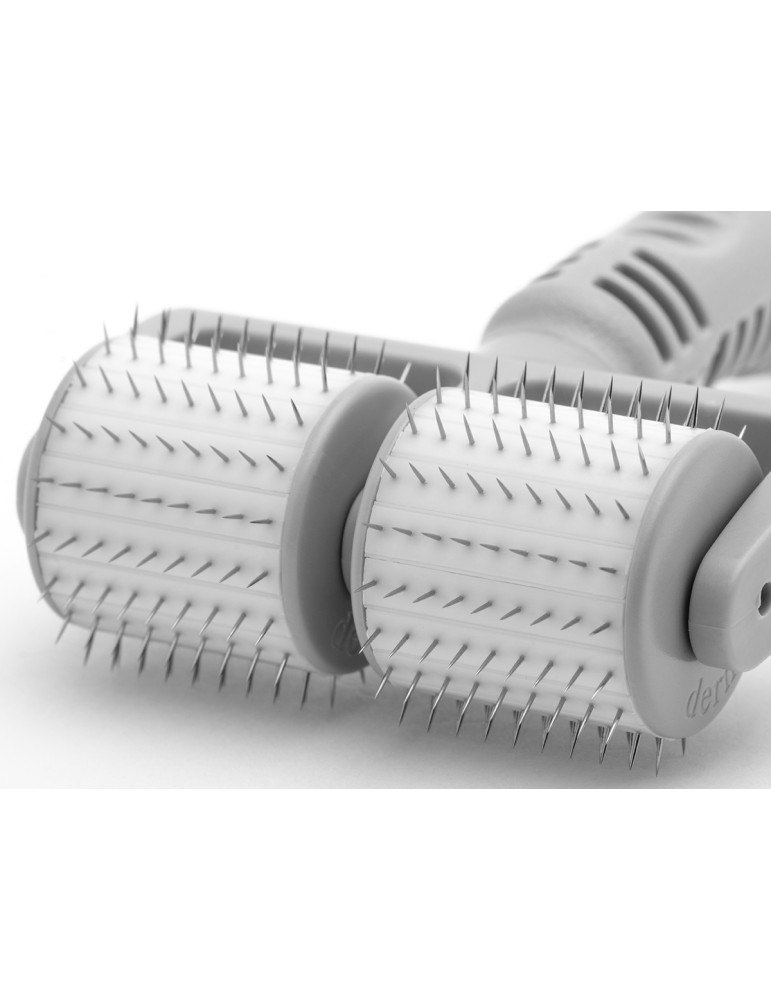 O Dermaroller Original com cabeça dupla é ideal para tratamentos de microagulhamento em toda a superfície do corpo (menos adequado para o rosto e pescoço) para cobrir superfícies maiores da pele em menos tempo, ideal para o tratamento profundo de grandes áreas comprometidas, por exemplo, cicatrizes de queimaduras.